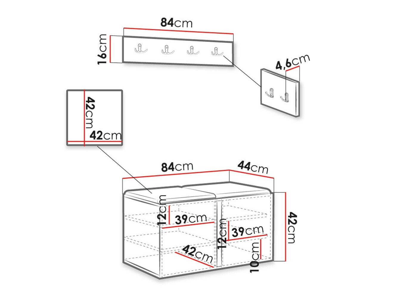 Cipődoboz méretei42 x 84 x 44 cm
