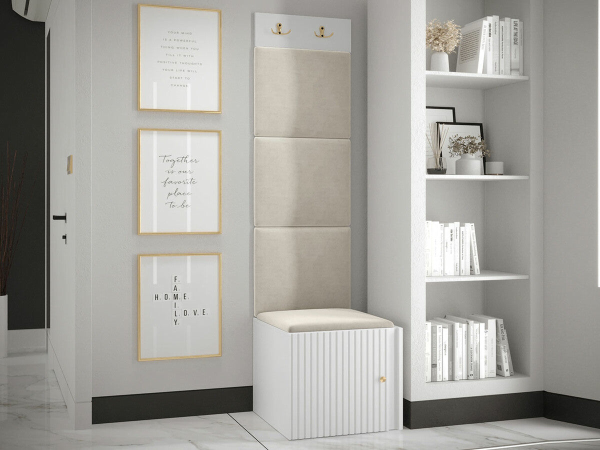 Előszoba garnitúra ORION RYFEL SLIM XXII (Towiro), Keret színe: Fehér, Puha falpanel színe: Manila 02