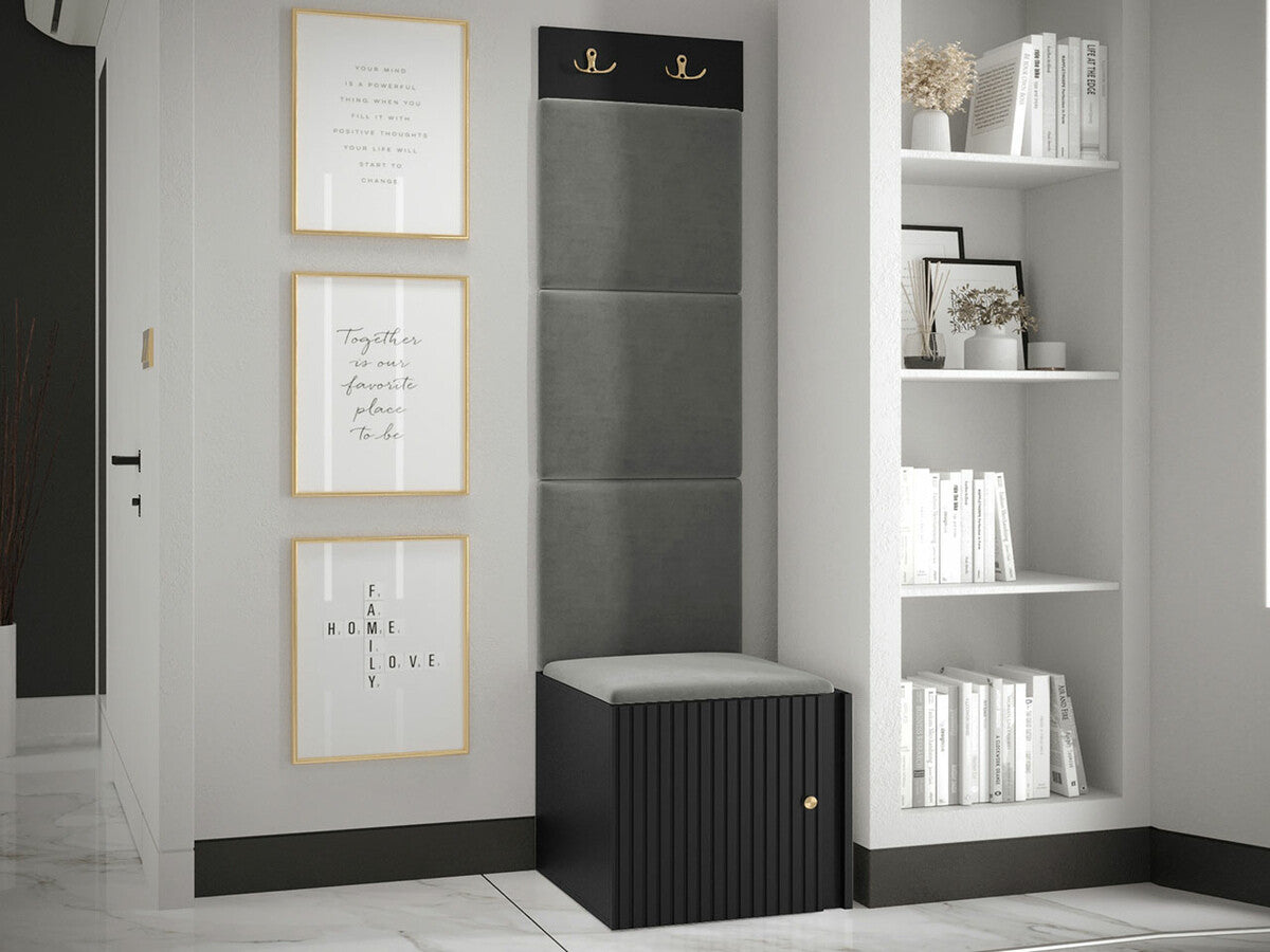 Előszoba garnitúra ORION RYFEL SLIM XXII (Towiro), Keret színe: Fekete, Puha falpanel színe: Manila 16