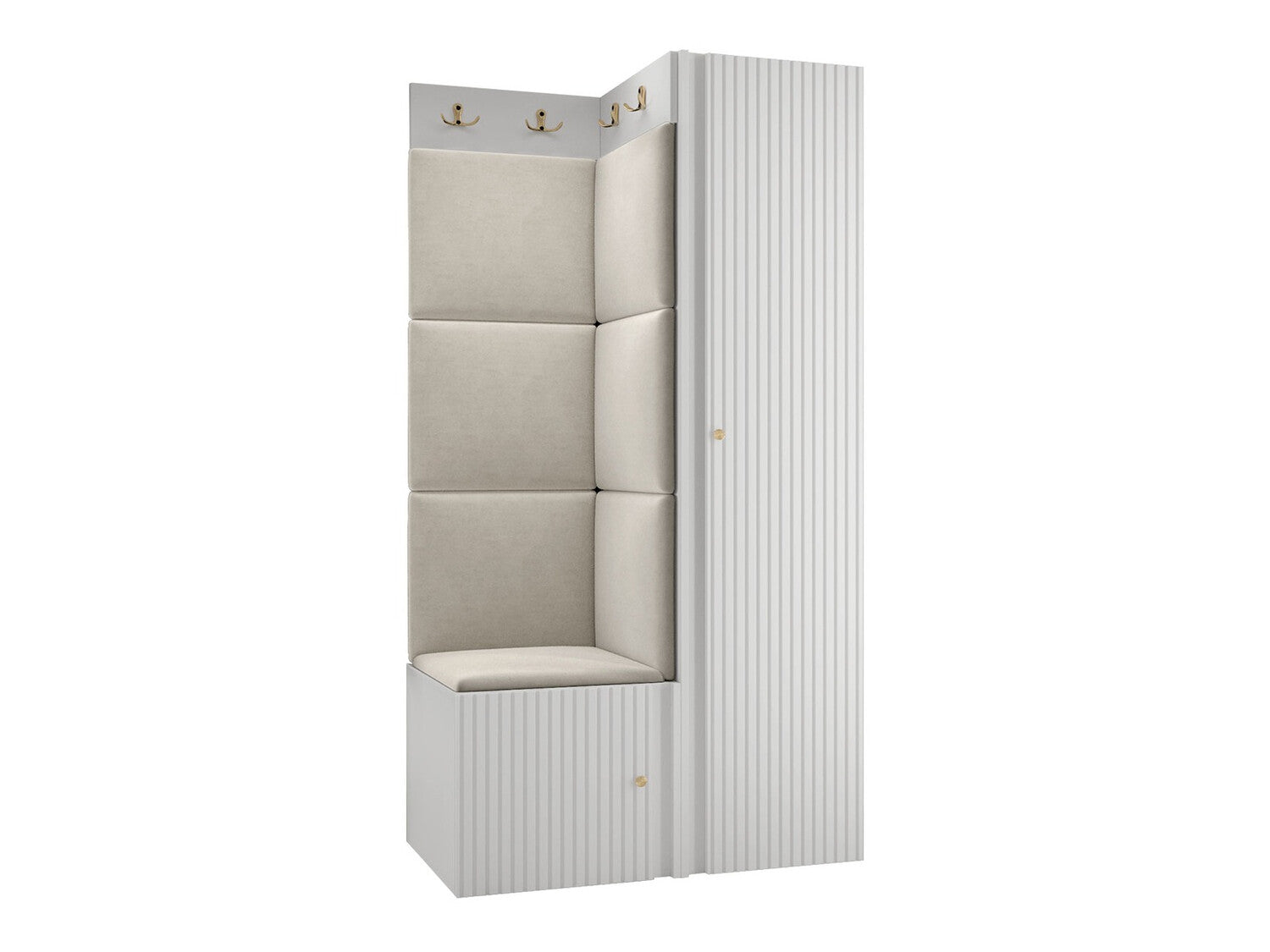 Előszoba garnitúra ORION RYFEL SLIM XXV (Towiro), Puha falpanel színe: Manila 02, Keret színe: Fehér