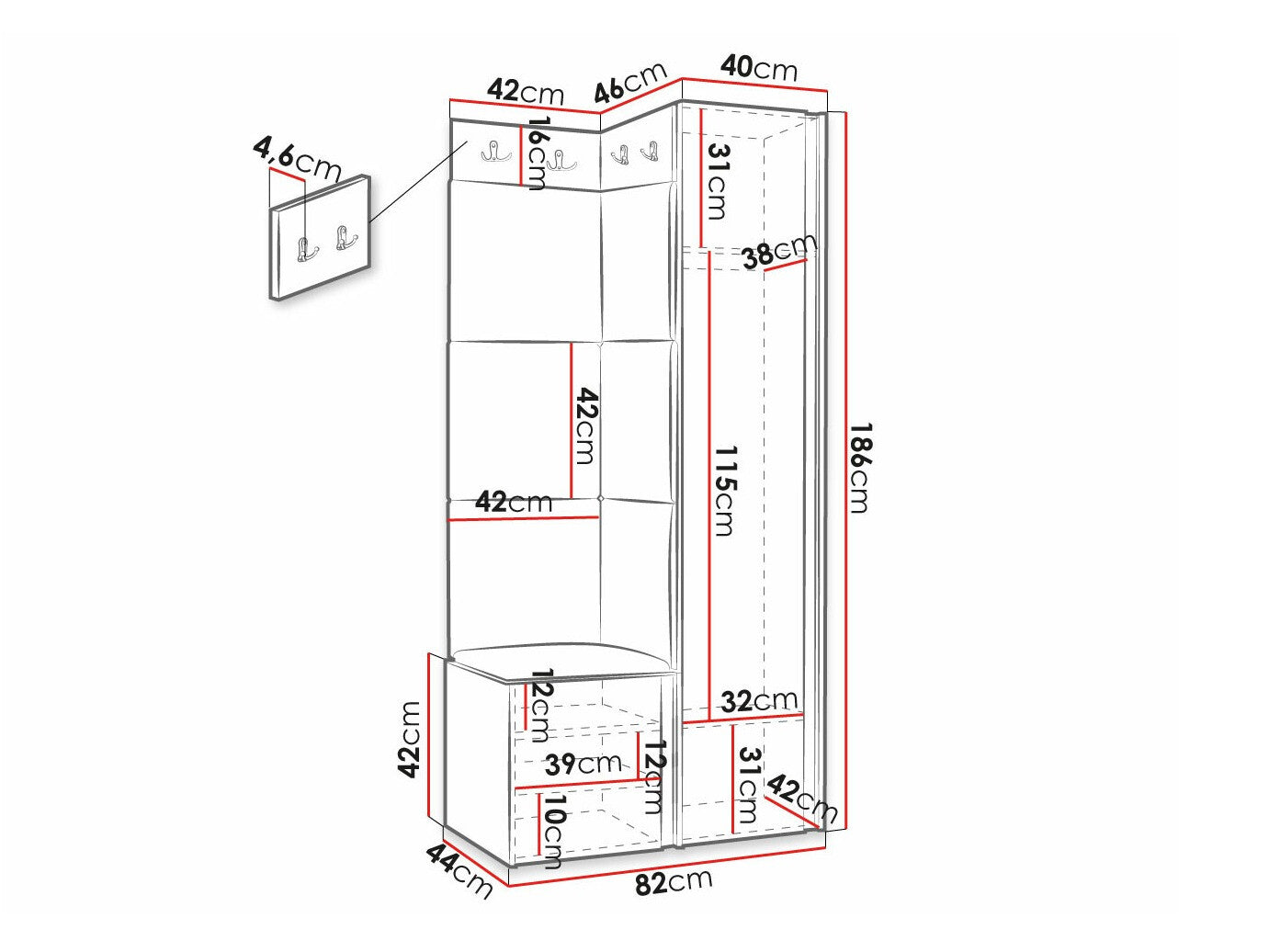 Akasztó méretei16 x 42 x 4.6 x 46 x 4.6 cm