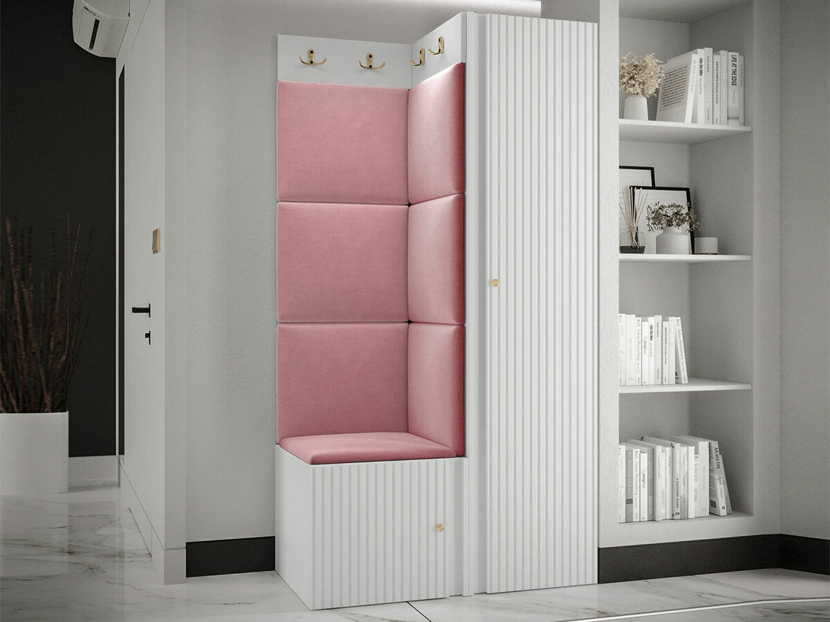 Előszoba garnitúra ORION RYFEL SLIM XXV (Towiro), Puha falpanel színe: Manila 09, Keret színe: Fehér
