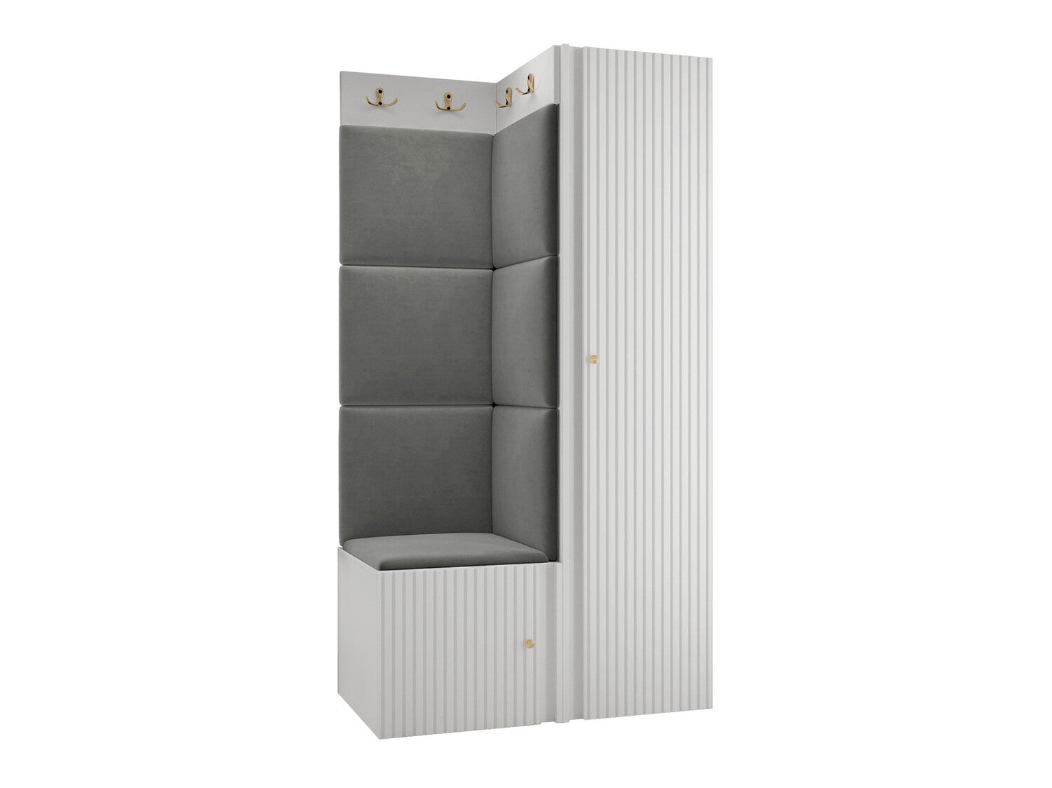 Előszoba garnitúra ORION RYFEL SLIM XXV (Towiro), Puha falpanel színe: Manila 16, Keret színe: Fehér
