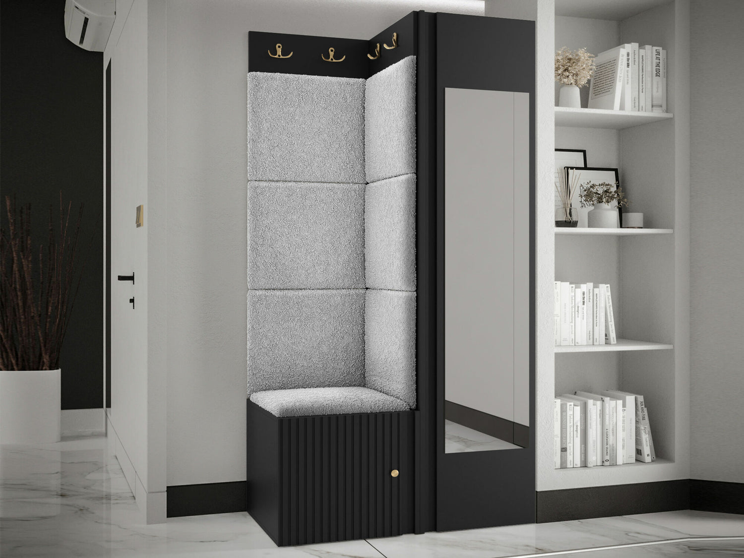 Előszoba garnitúra ORION RYFEL SLIM XXVI (Towiro), Puha falpanel színe: Abriamo 6, Keret színe: Fekete