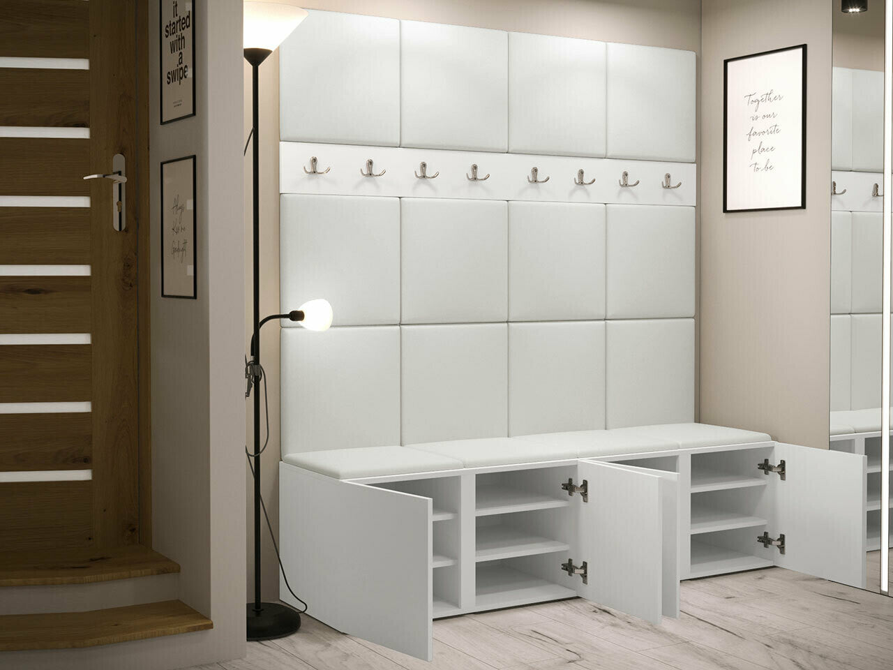 Előszoba garnitúra ORION V (Tavasz V), Keret színe: Fehér, Puha falpanel színe: Abriamo 6