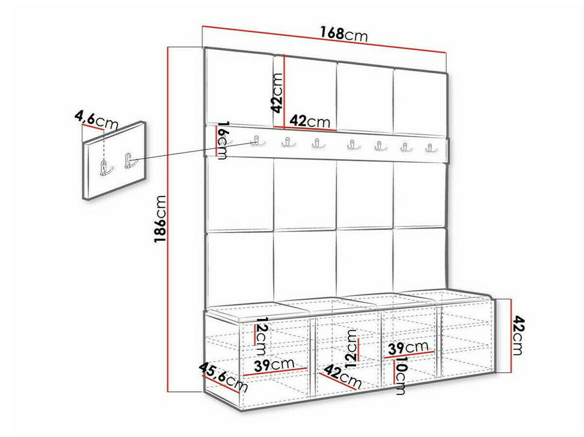 Cipődoboz méretei42 x 168 x 45.6 cm