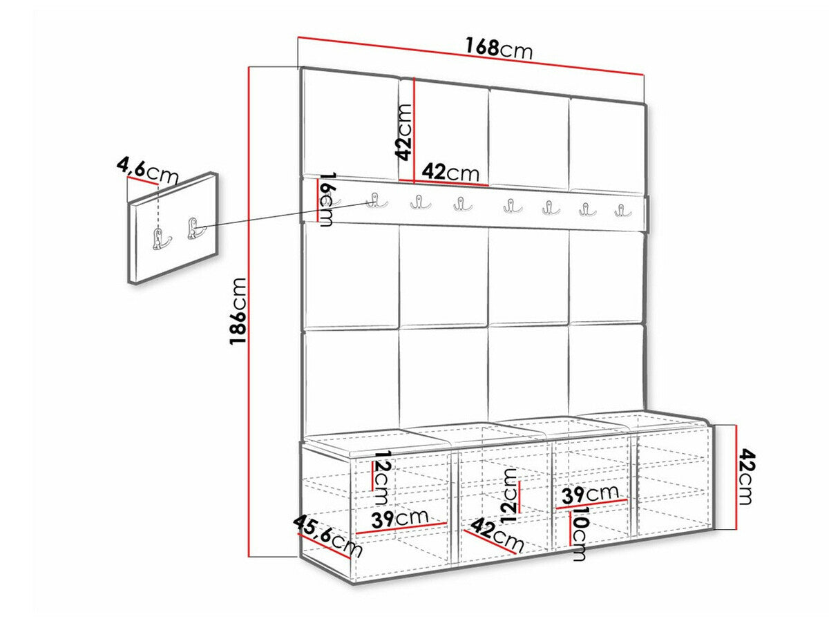 Cipődoboz méretei42 x 168 x 45.6 cm