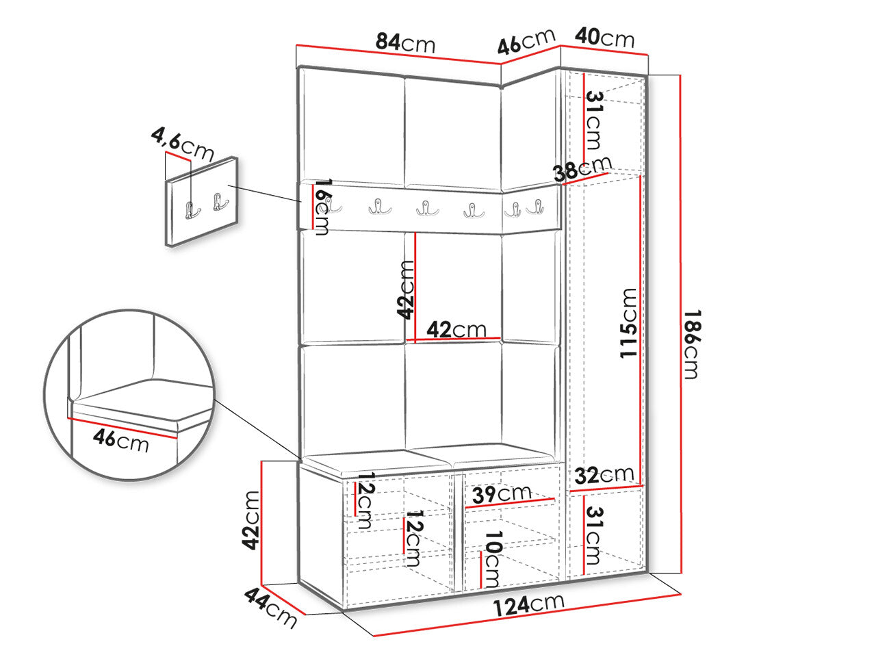 Akasztó méretei16 x 84 x 4.6 x 42 x 4.6 cm