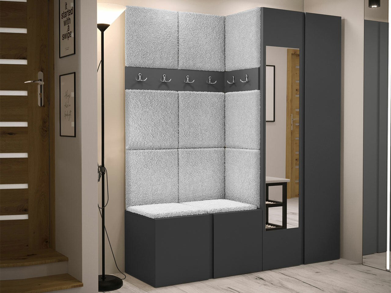 Előszoba garnitúra ORION XII (Tavasz XII), Keret színe: Grafit, Puha falpanel színe: Abriamo 6