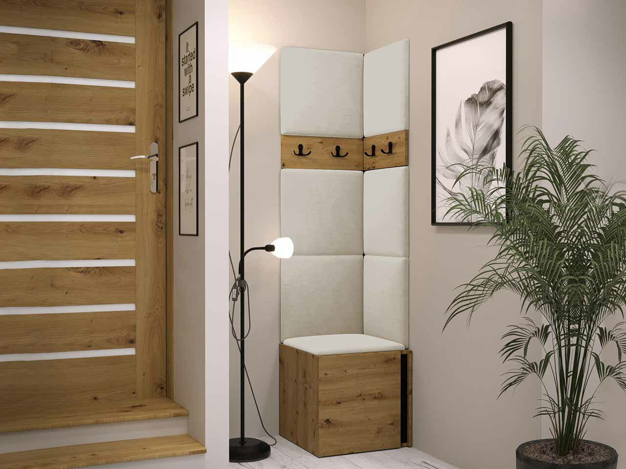 Előszoba garnitúra ORION XXI (Tavasz XXI), Keret színe: Artisan tölgy + Fekete, Puha falpanel színe: Manila 02