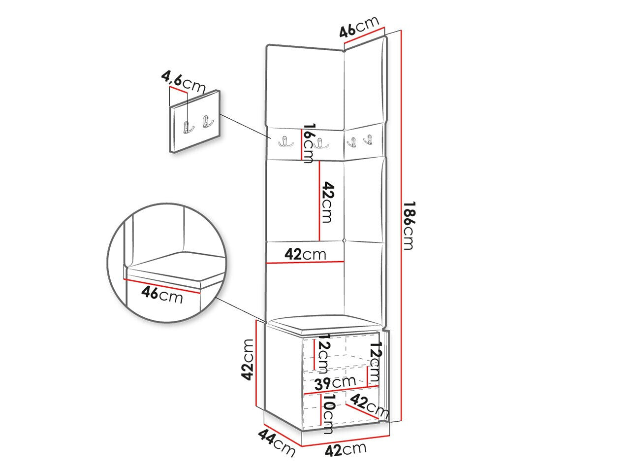 Előszoba garnitúra ORION XXI (Tavasz XXI), Keret színe: Fehér, Puha falpanel színe: Abriamo 3