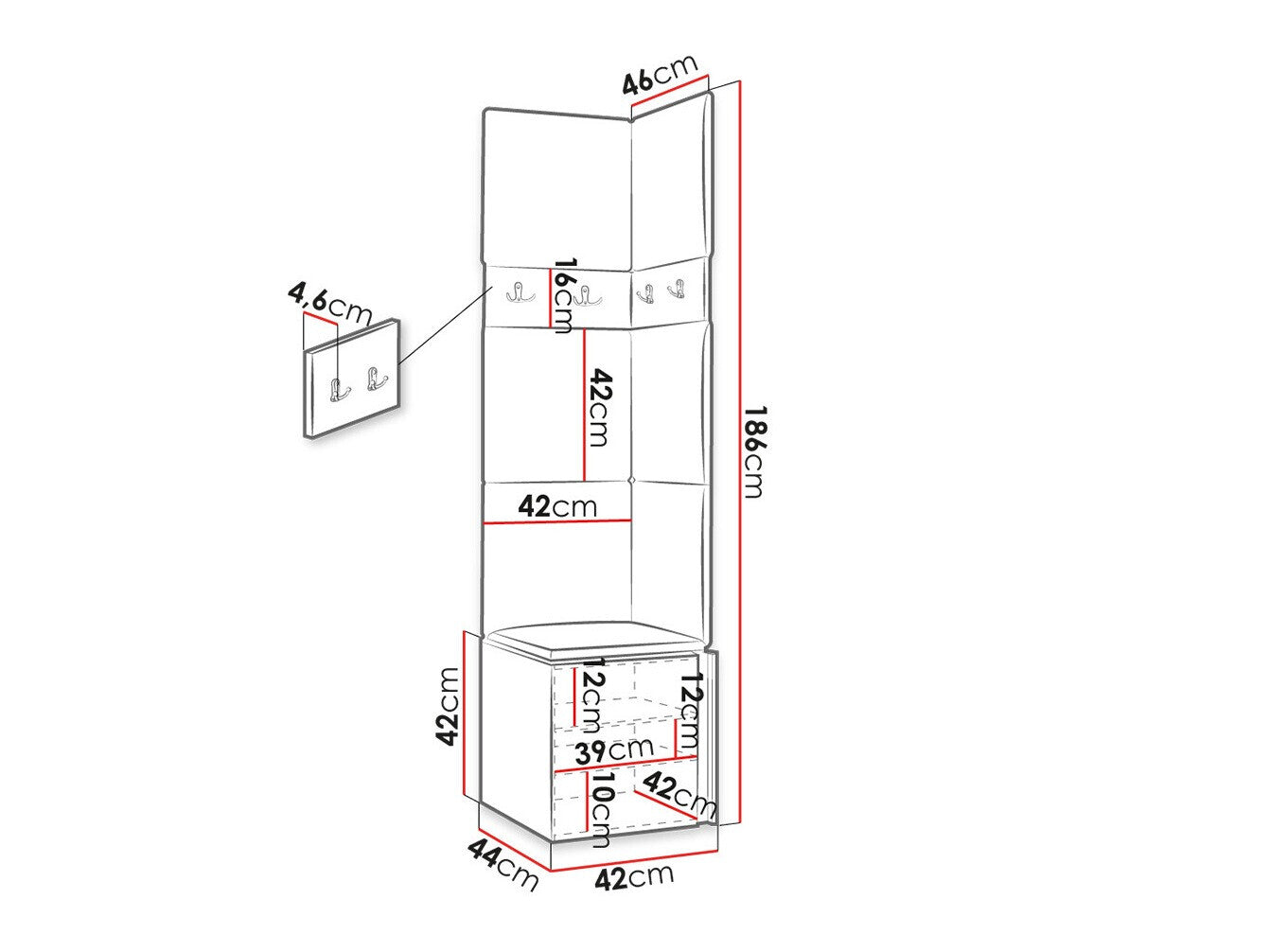 Akasztó méretei16 x 42 x 4.6 cm