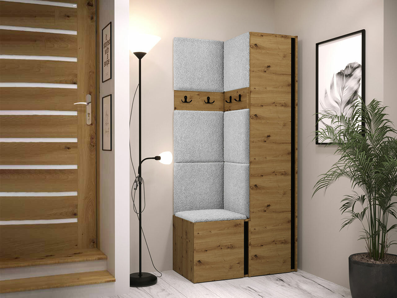 Előszoba garnitúra ORION XXIV (Tavasz XXIV), Keret színe: Artisan tölgy + Fekete, Puha falpanel színe: Abriamo 6