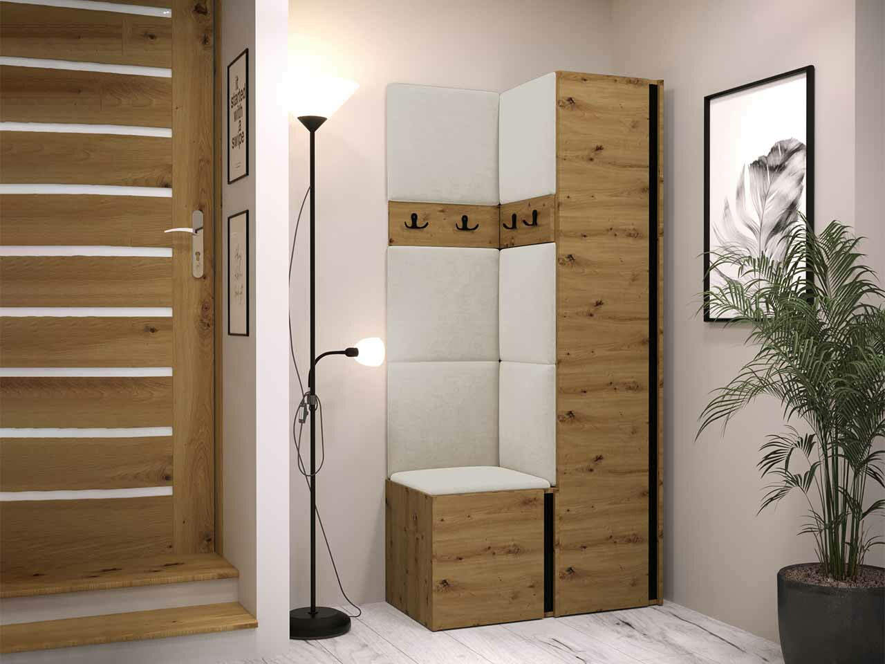 Előszoba garnitúra ORION XXIV (Tavasz XXIV), Keret színe: Artisan tölgy + Fekete, Puha falpanel színe: Manila 02