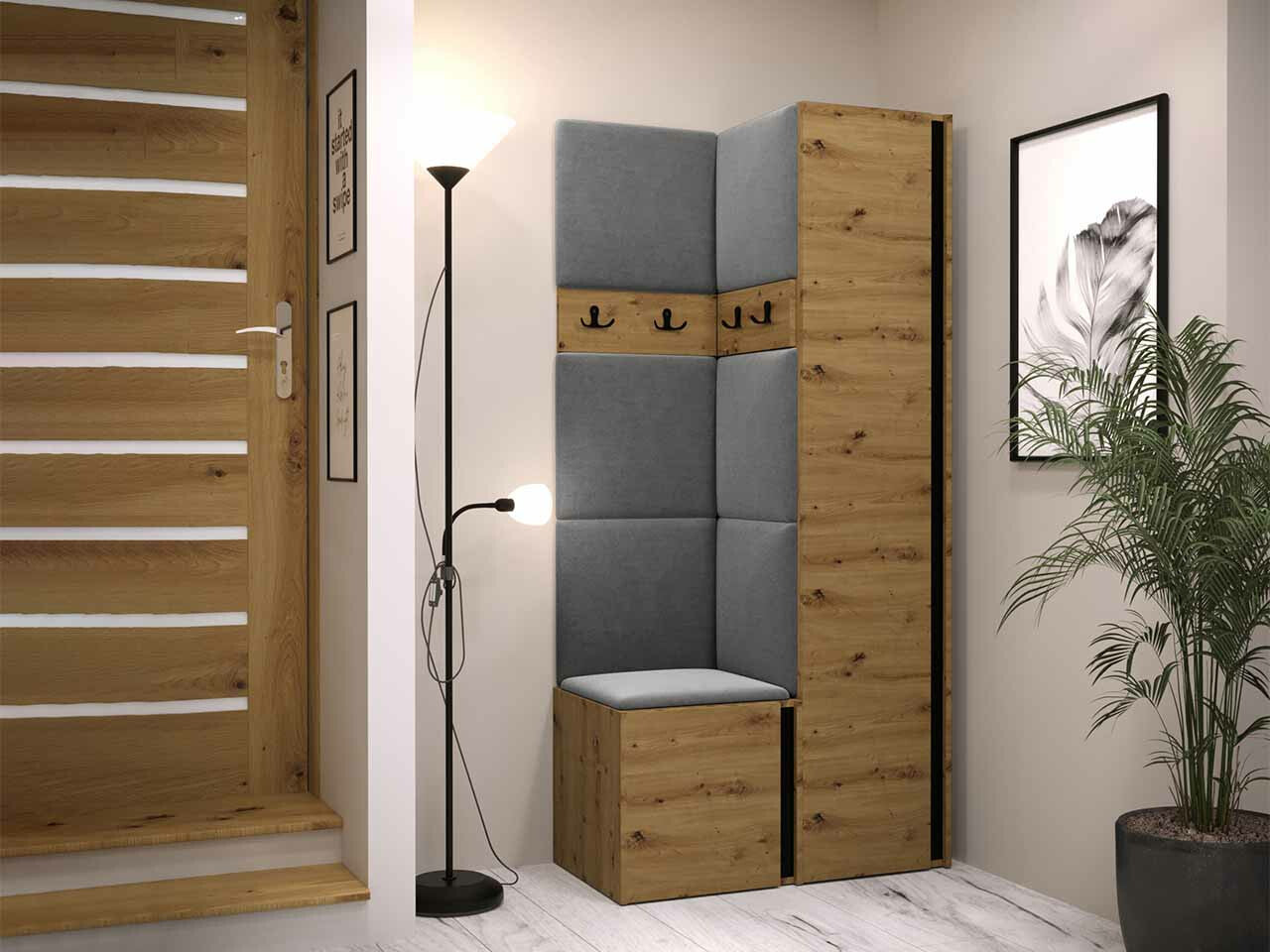 Előszoba garnitúra ORION XXIV (Tavasz XXIV), Keret színe: Artisan tölgy + Fekete, Puha falpanel színe: Manila 16