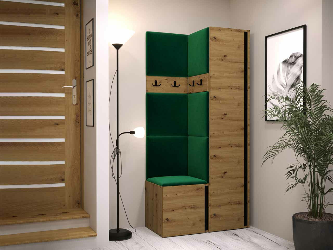 Előszoba garnitúra ORION XXIV (Tavasz XXIV), Keret színe: Artisan tölgy + Fekete, Puha falpanel színe: Manila 35