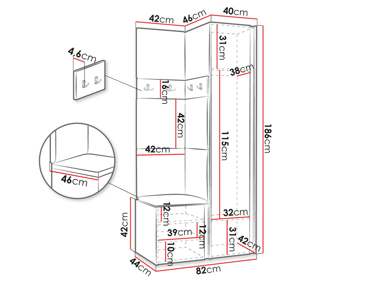 Előszoba garnitúra ORION XXIV (Tavasz XXIV), Keret színe: Fehér, Puha falpanel színe: Abriamo 3