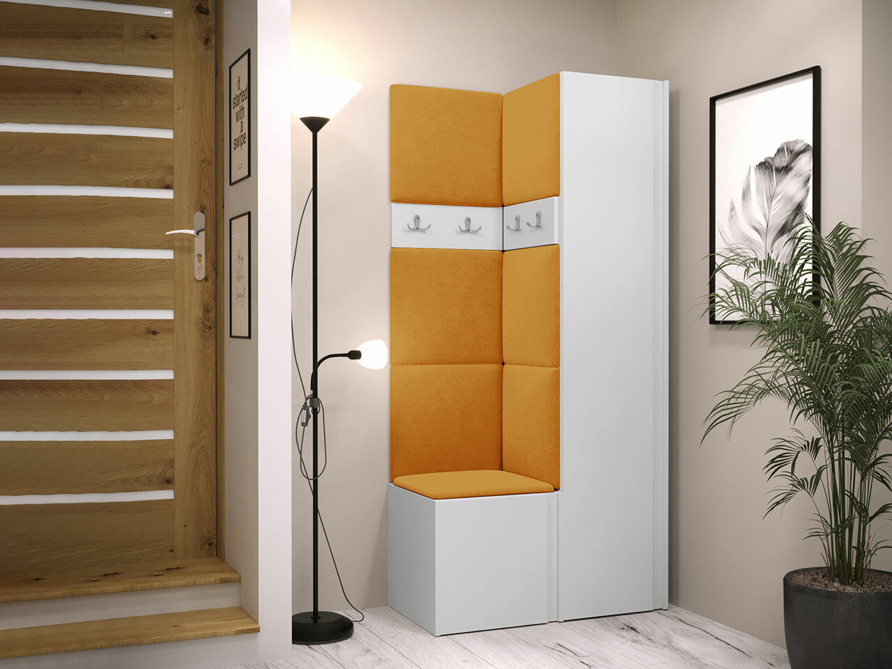 Előszoba garnitúra ORION XXIV (Tavasz XXIV), Keret színe: Fehér, Puha falpanel színe: Manila 32