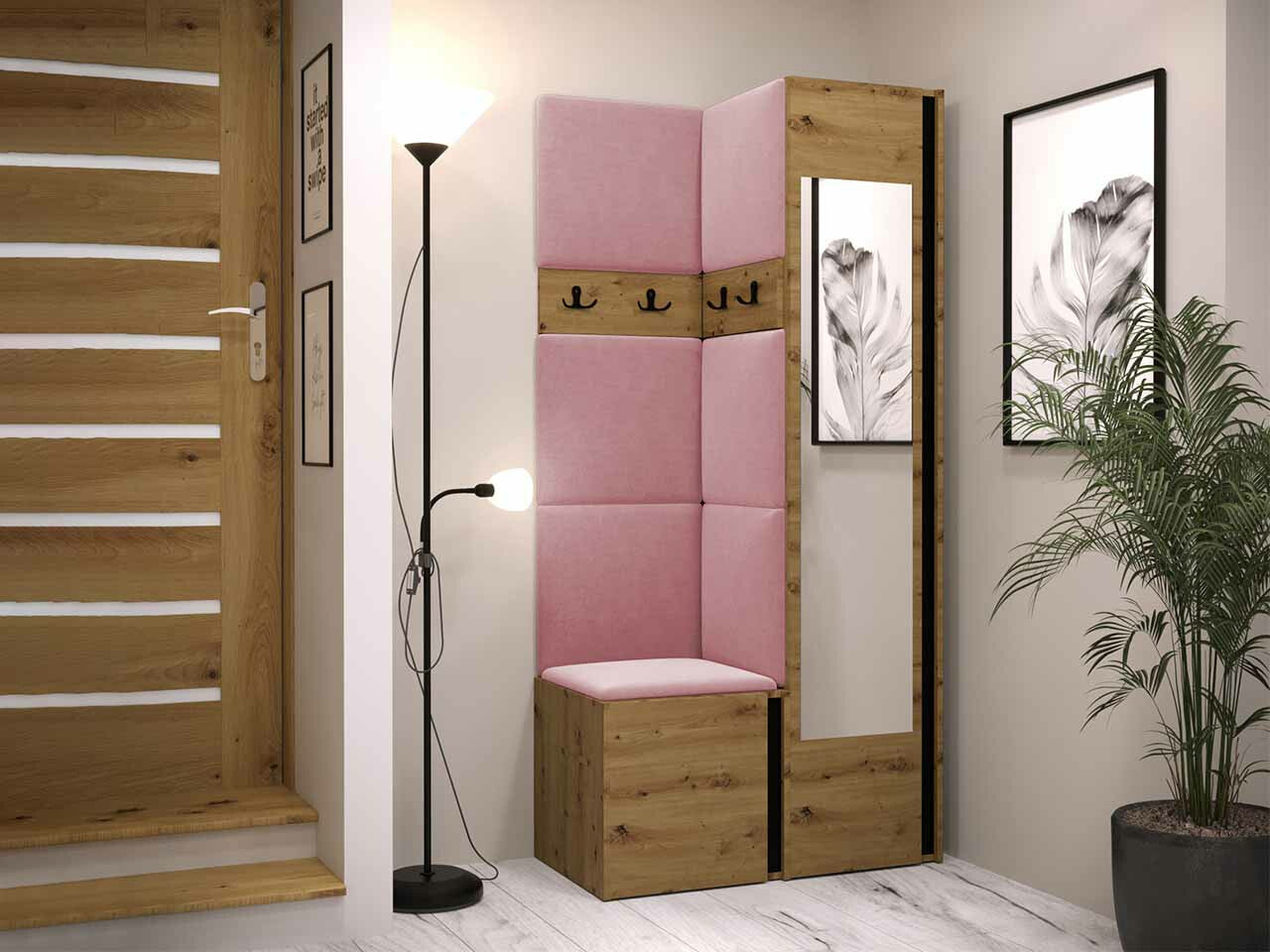 Előszoba garnitúra ORION XXV (Tavasz XXV), Keret színe: Artisan tölgy + Fekete, Puha falpanel színe: Manila 09