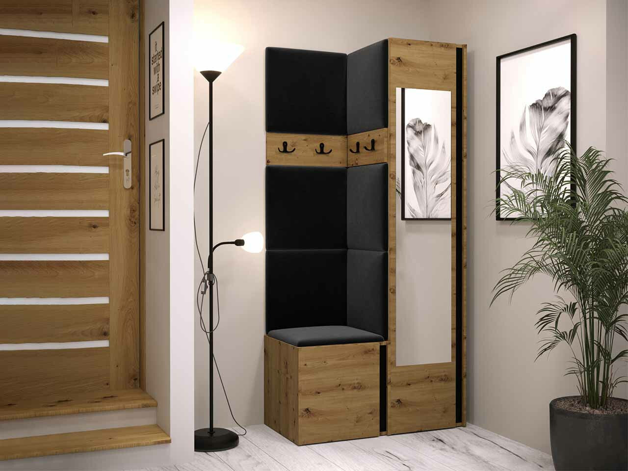 Előszoba garnitúra ORION XXV (Tavasz XXV), Keret színe: Artisan tölgy + Fekete, Puha falpanel színe: Manila 18