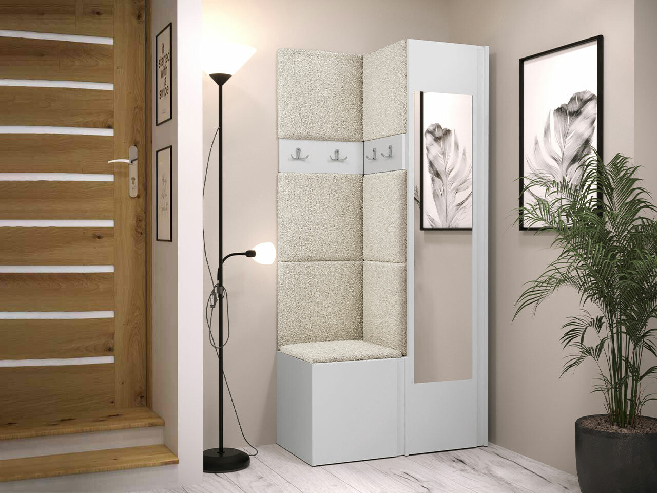 Előszoba garnitúra ORION XXV (Tavasz XXV), Keret színe: Fehér, Puha falpanel színe: Abriamo 3
