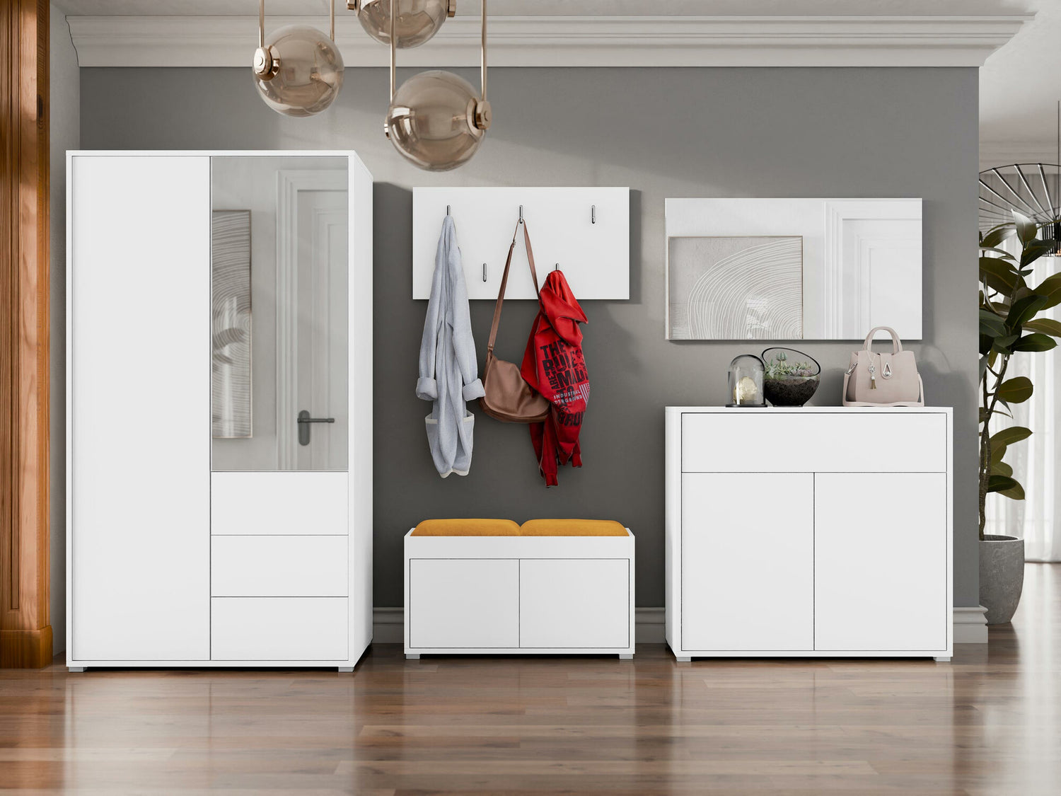 Előszoba garnitúra Zestaw GESITA V, Keret színe: Fehér, Puha falpanel színe: Manila 32