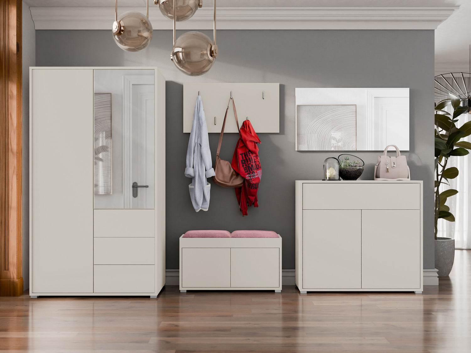 Előszoba garnitúra Zestaw GESITA V, Keret színe: Kasmír, Puha falpanel színe: Manila 09