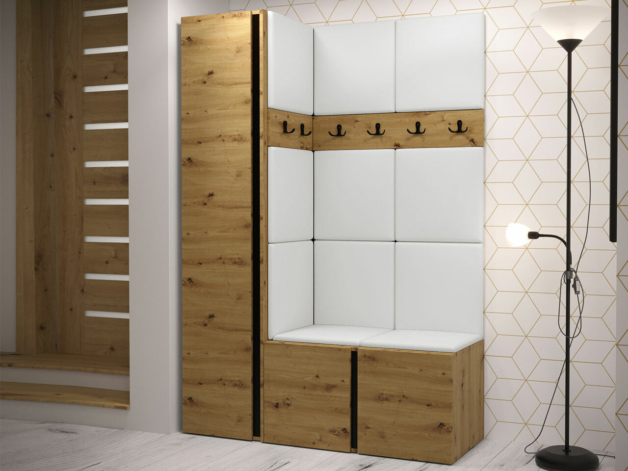 Előszoba garnitúra Zestaw ORION IX (Tavasz IX), Keret színe: Artisan tölgy, Puha falpanel színe: Öko bőr Soft 017