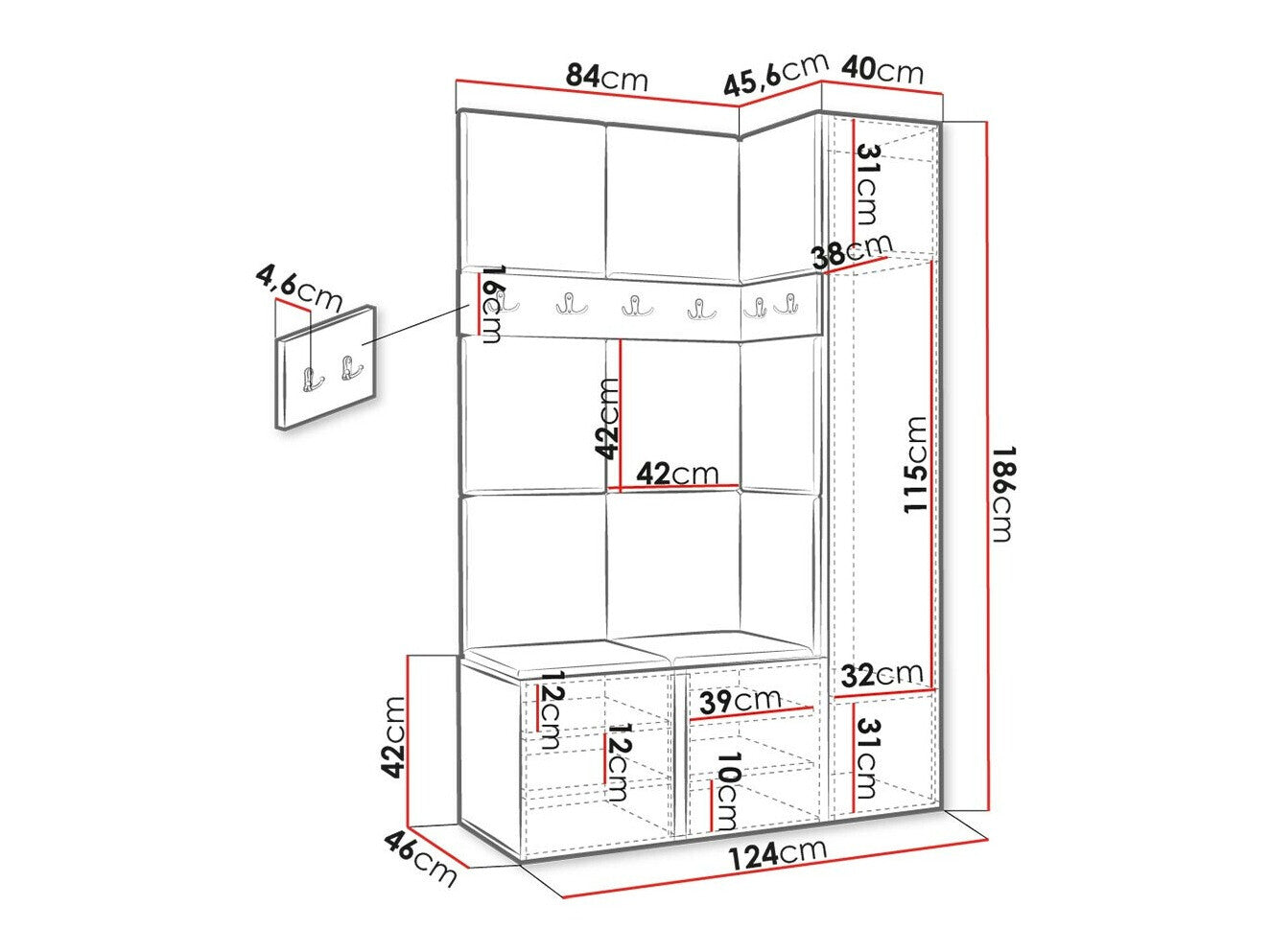 Akasztó méretei16 x 84 x 4.6 x 42 x 4.6 cm
