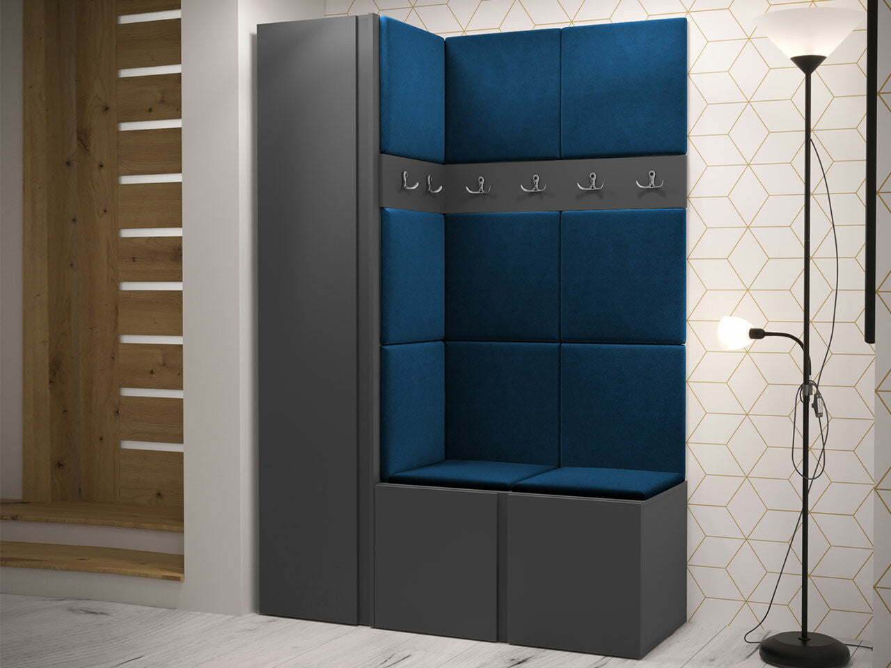 Előszoba garnitúra Zestaw ORION IX (Tavasz IX), Keret színe: Grafit, Puha falpanel színe: Manila 26