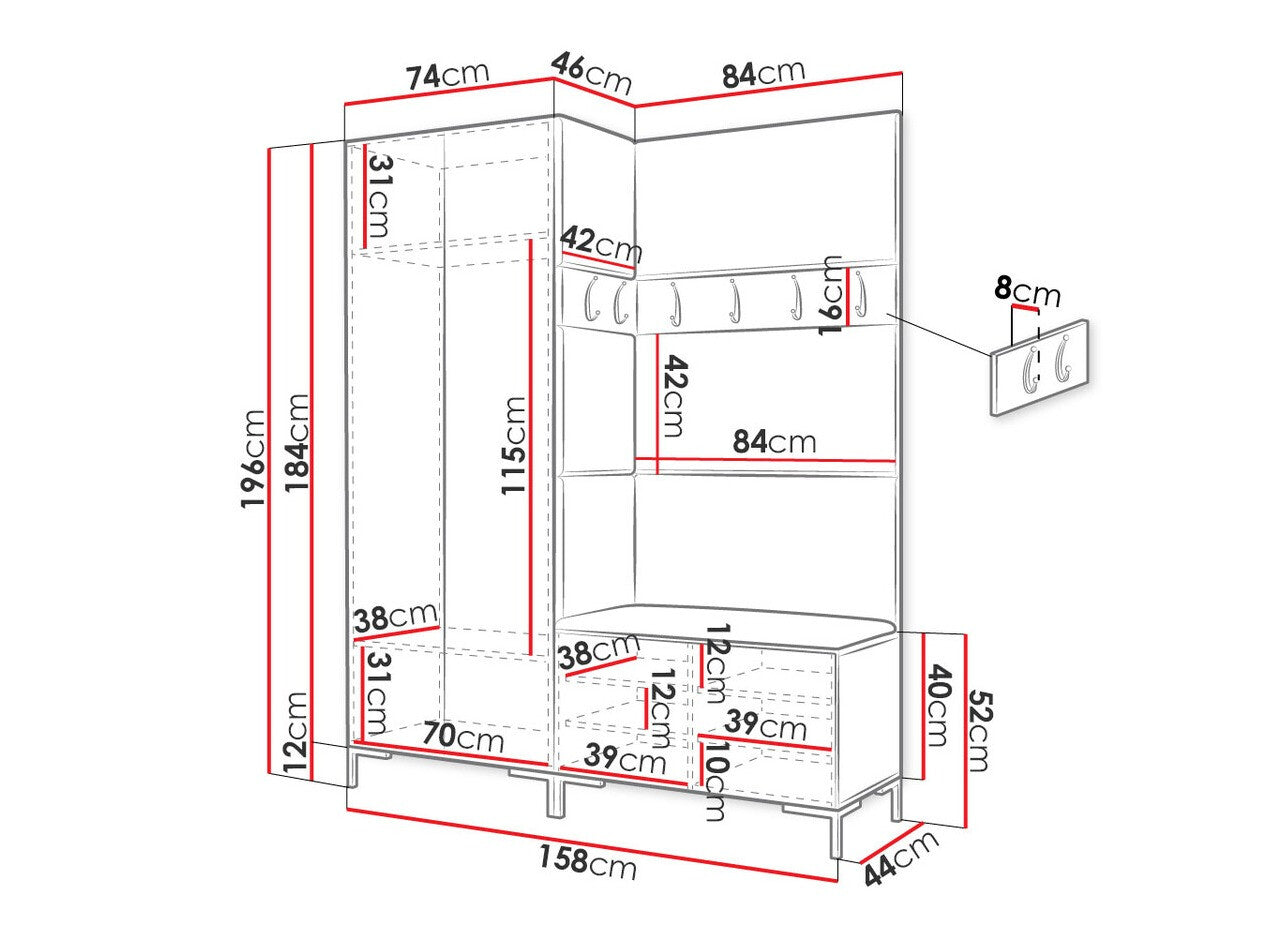 Akasztó méretei16 x 84 x 8 x 42 x 8 cm