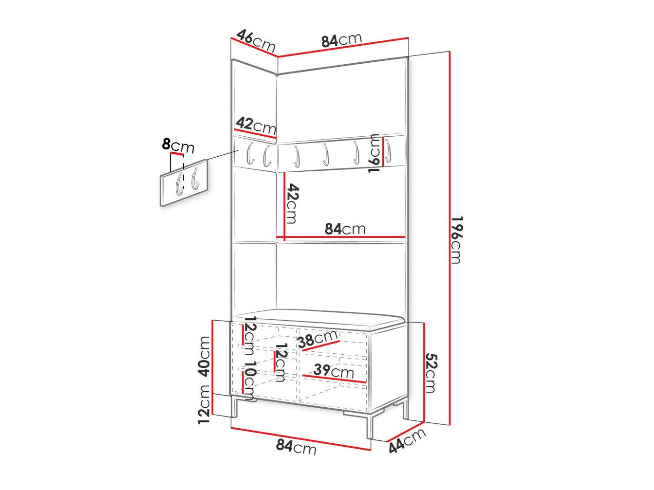Akasztó méretei16 x 84 x 8 x 42 x 8 cm