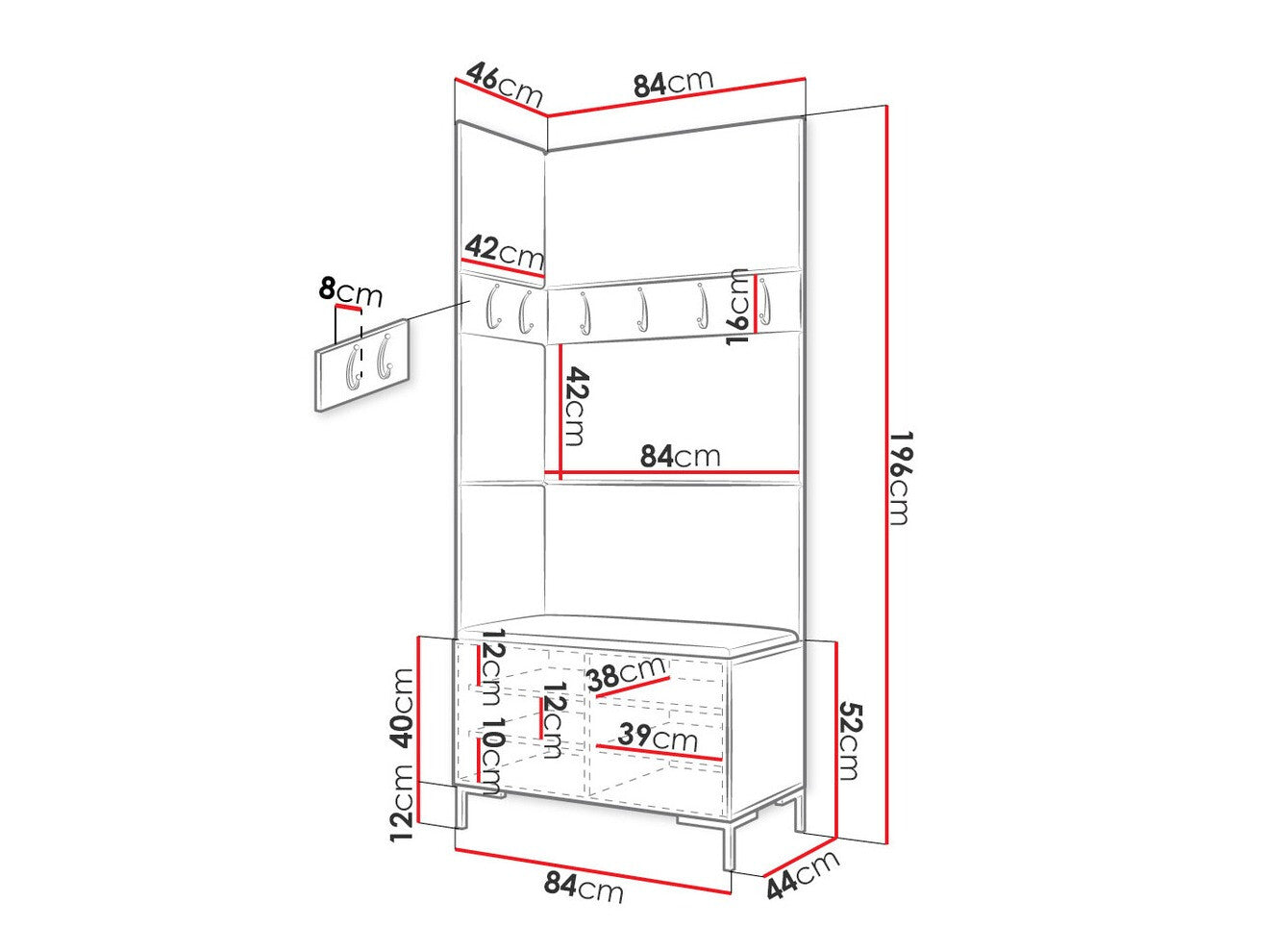16 x 84 x 8 x 42 x 8 cm
