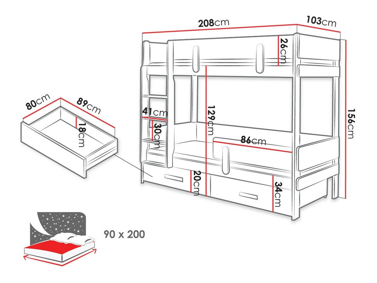 Emeletes ágy ETTORE (Petenti 90), Szín: Fehér + Szürke, Változatok: Balos