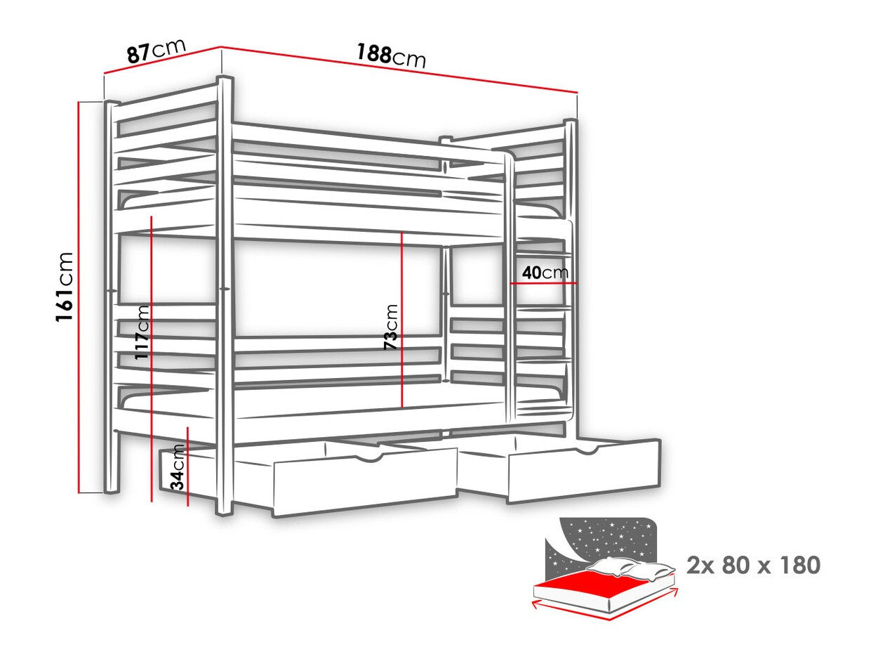 Emeletes ágy Nemo (Aero), Szín: Fehér, Alvó felület mérete: 80 x 180 cm