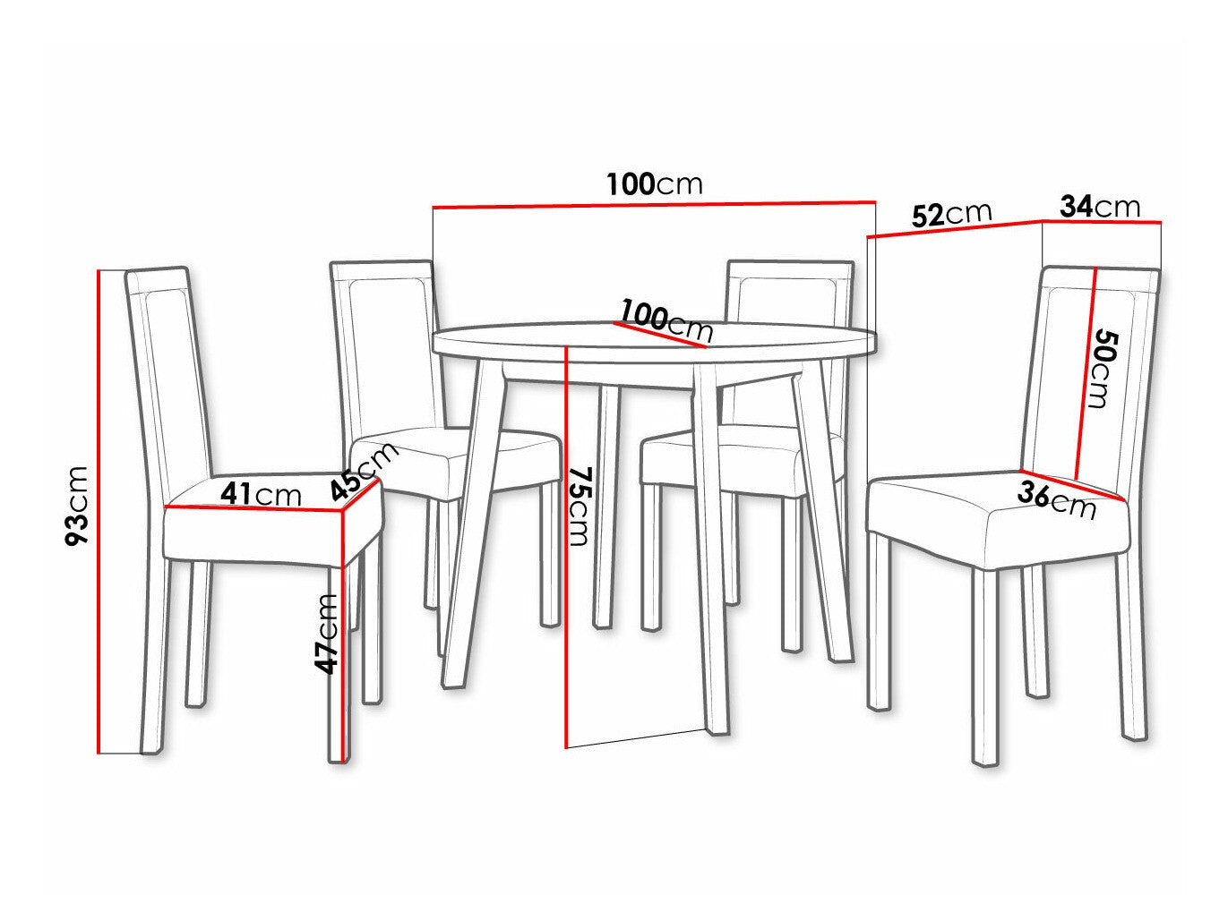 Szék méretek93 x 45 x 52 cm