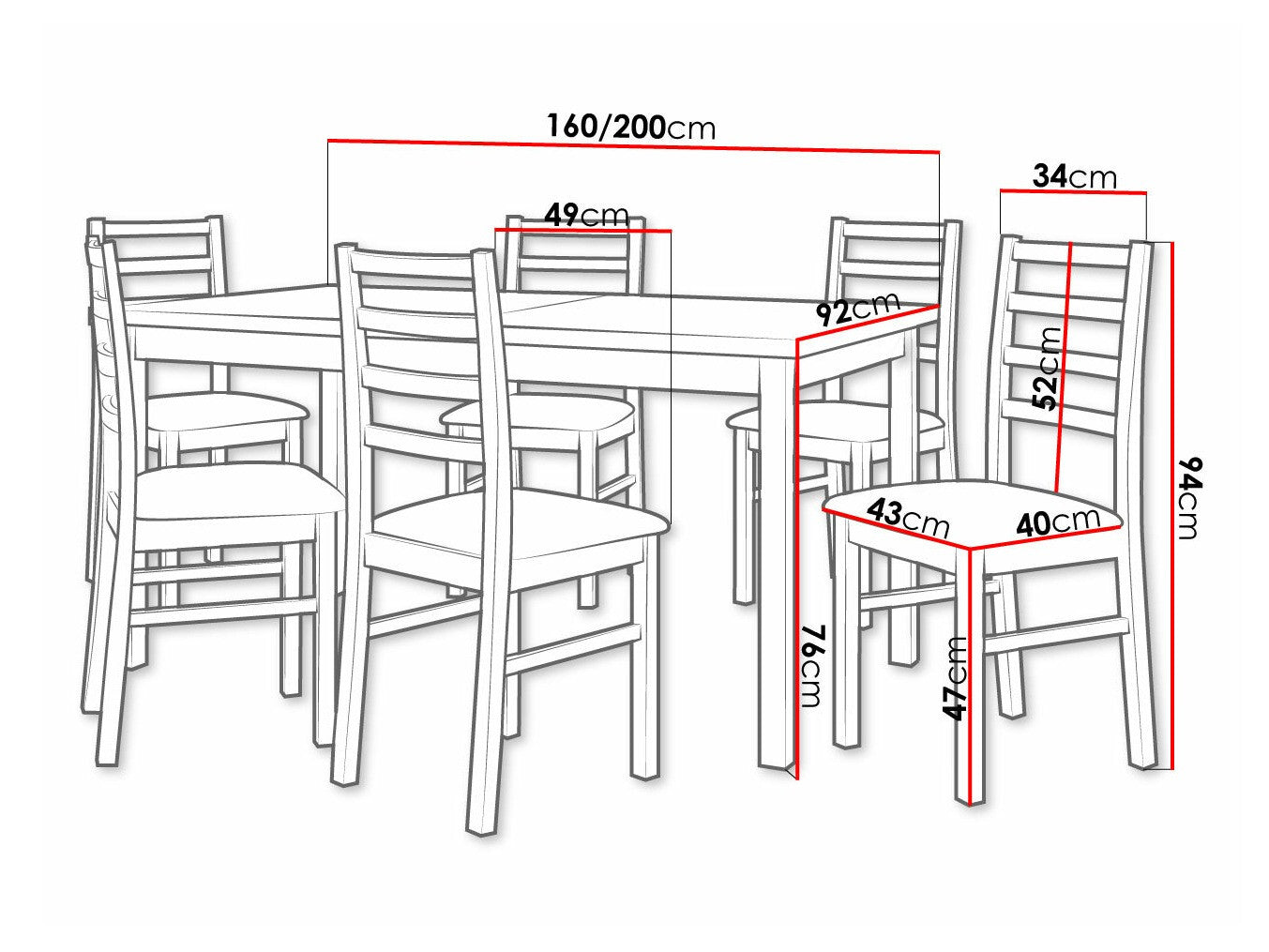 Szék méretek94 x 43 x 49 cm