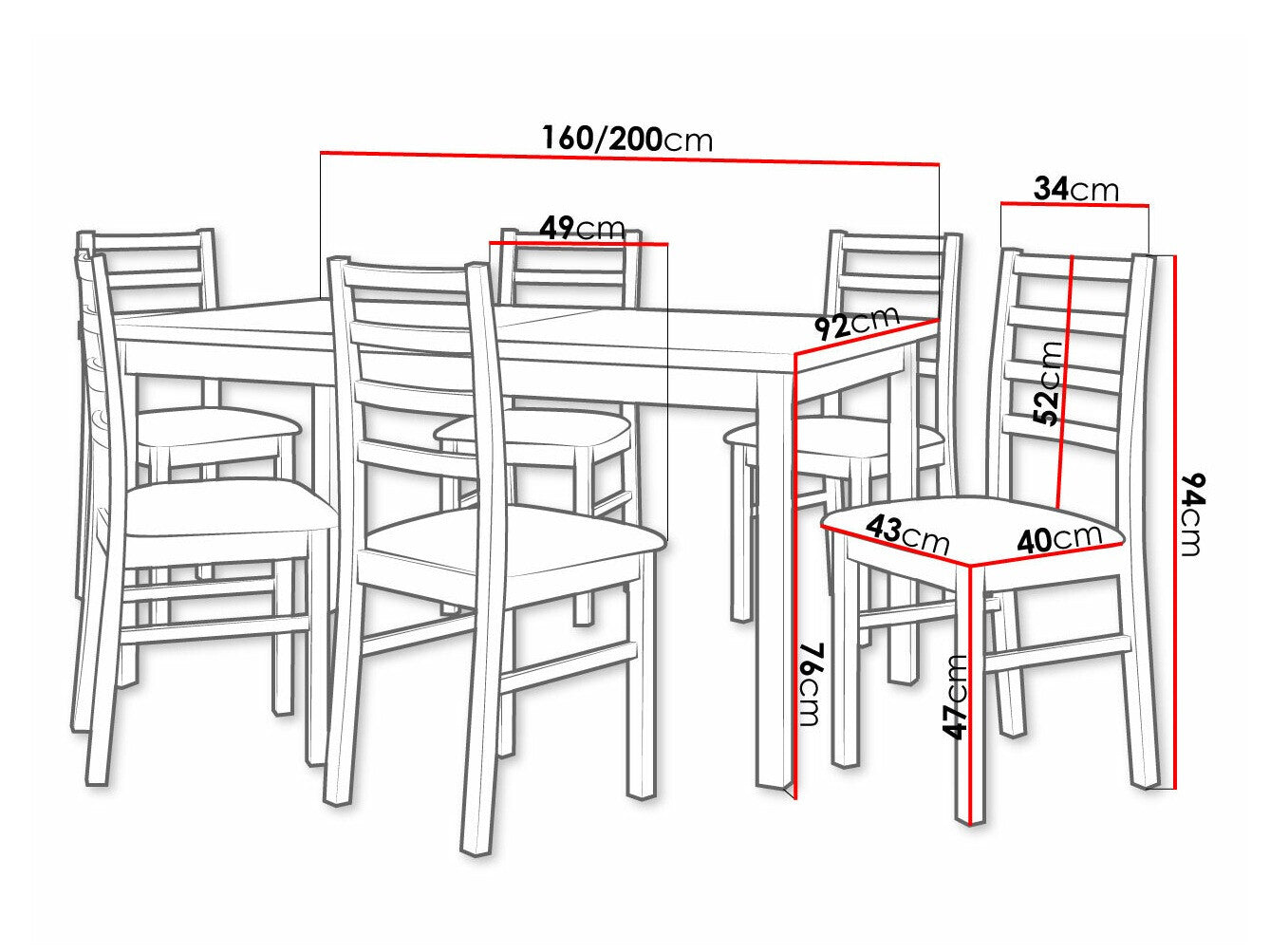 Étkezőgarnitúra 02 (MODENA 2 + NILO 8), Fa színe: Sonoma tölgy, Kárpit: Kronos 22