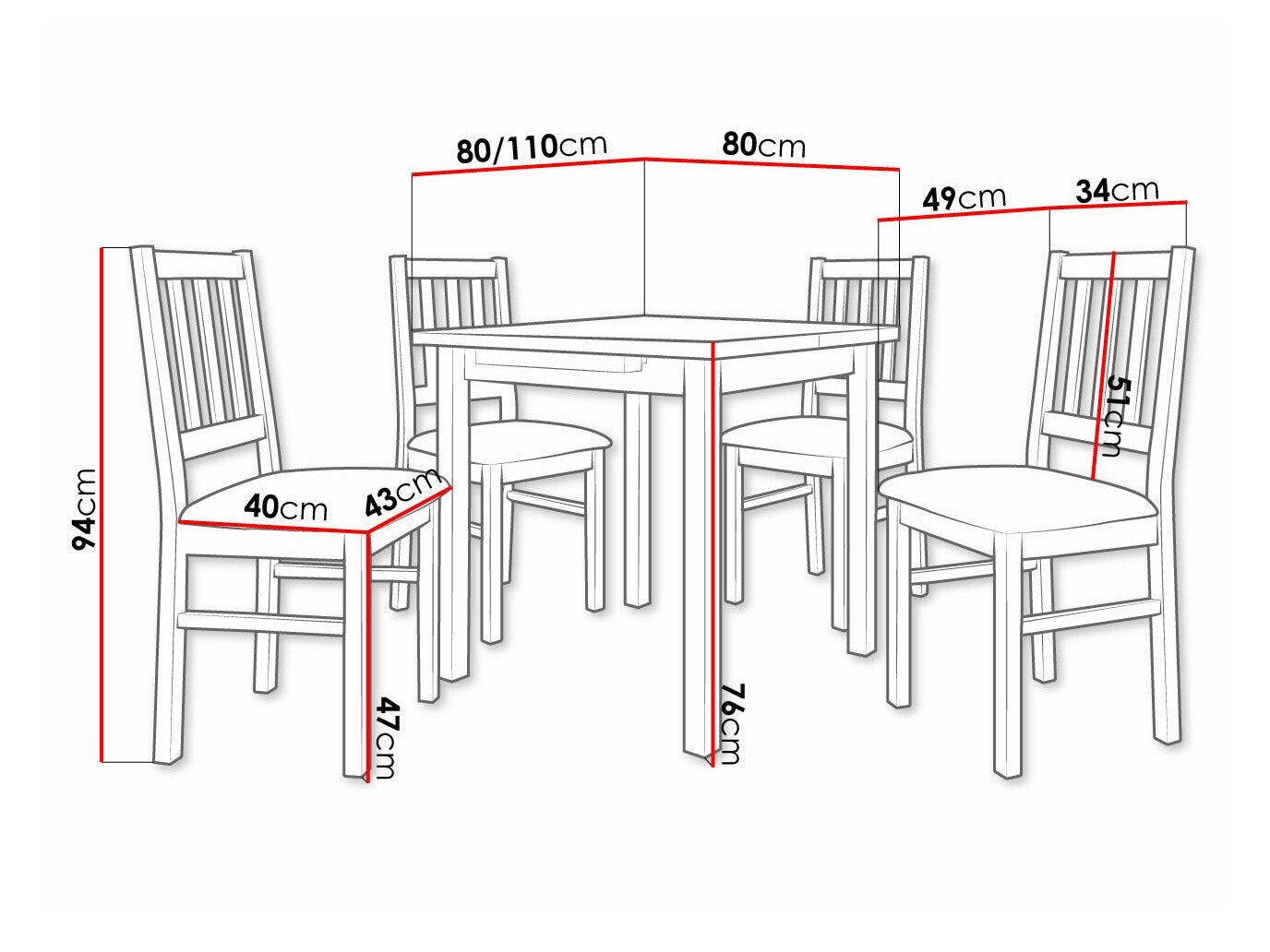 Szék méretek94 x 43 x 49 cm
