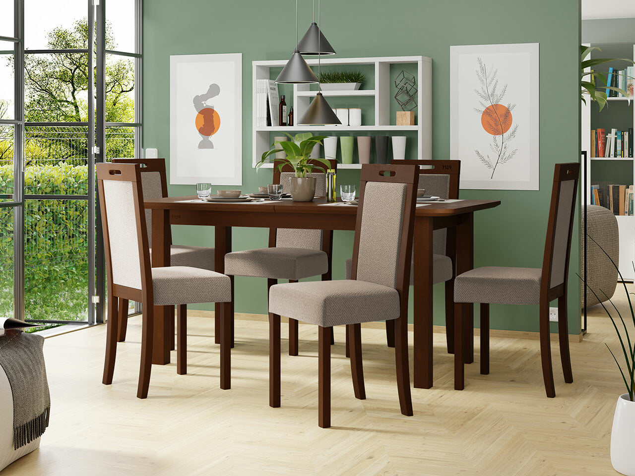 Étkezőgarnitúra 10 (WENUS 5S + ROMA 3), Fa színe: Dió, Kárpit: Paros 2