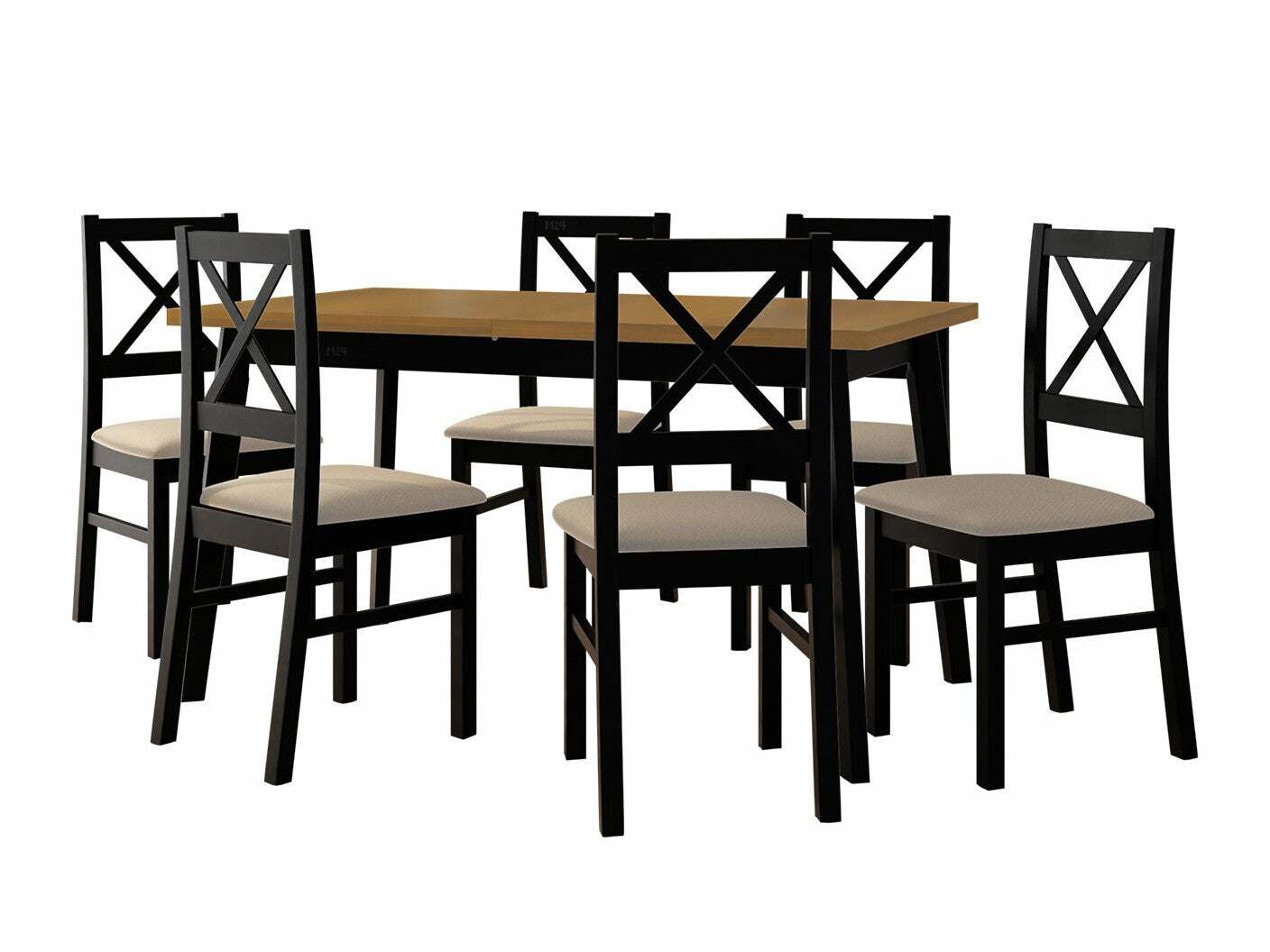 Étkezőgarnitúra 11 (OSLO 5 + NILO 10), Asztal színe: Grandson tölgy + Fekete, Kárpit: Paros 2
