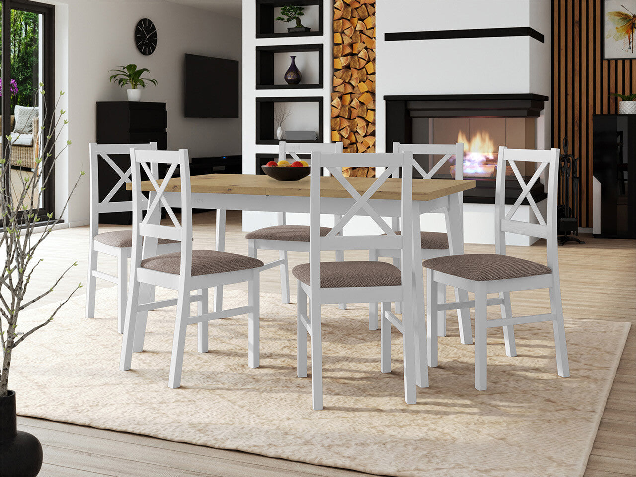 Étkezőgarnitúra 11 (OSLO 5 + NILO 10), Fa színe: Fehér, Kárpit: Hygge 20