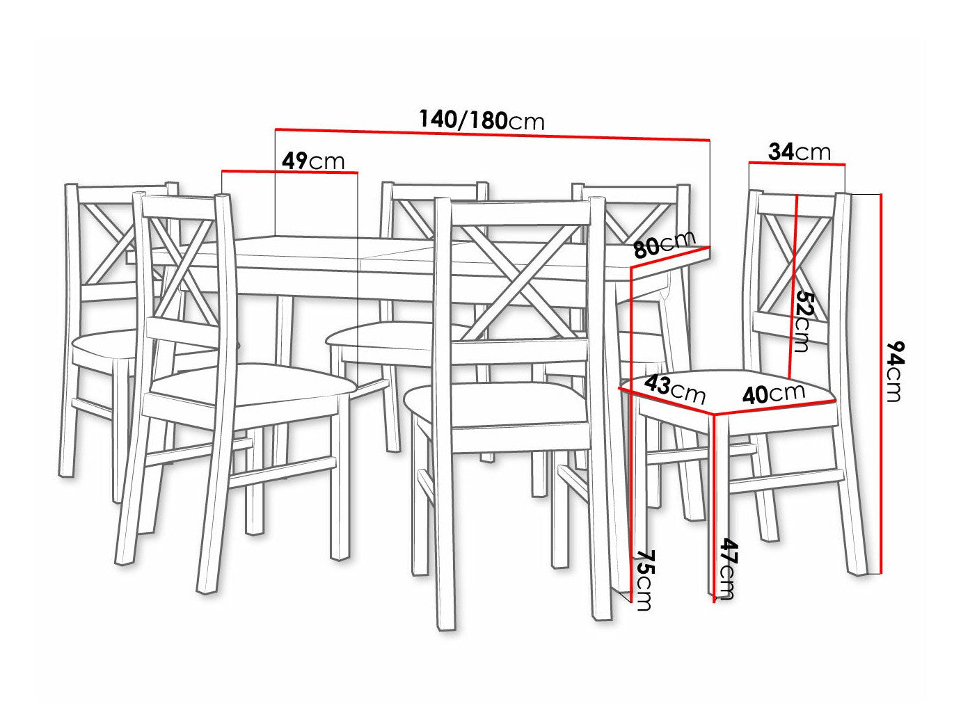 Szék méretek94 x 43 x 49 cm