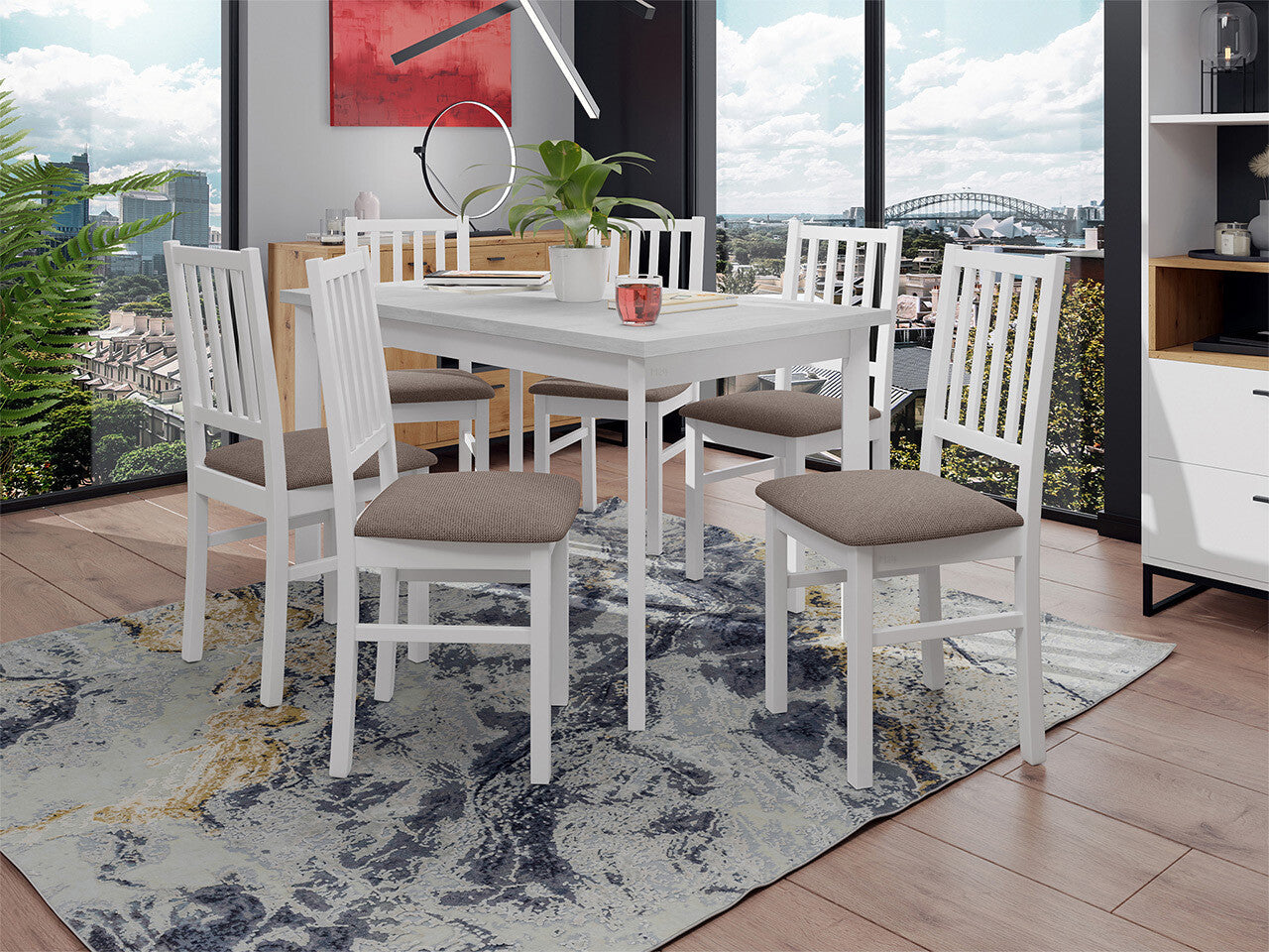 Étkezőgarnitúra 15 (MODENA 1P + NILO 7), Fa színe: Fehér, Kárpit: Hygge 20