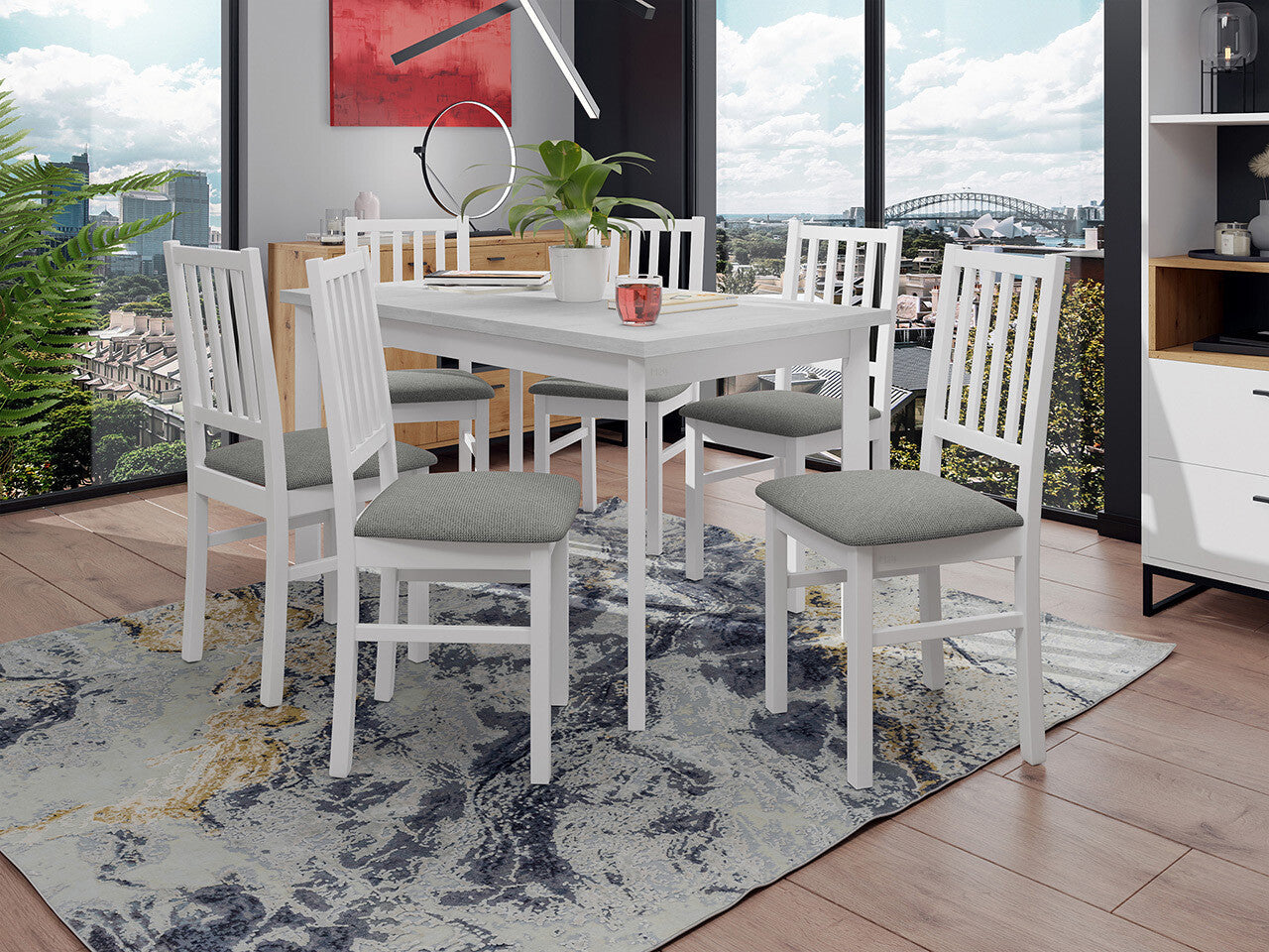 Étkezőgarnitúra 15 (MODENA 1P + NILO 7), Fa színe: Fehér, Kárpit: Hygge 91
