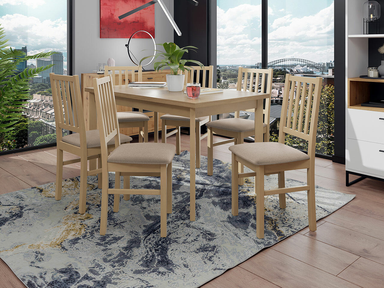 Étkezőgarnitúra 15 (MODENA 1P + NILO 7), Fa színe: Sonoma tölgy, Kárpit: Paros 2