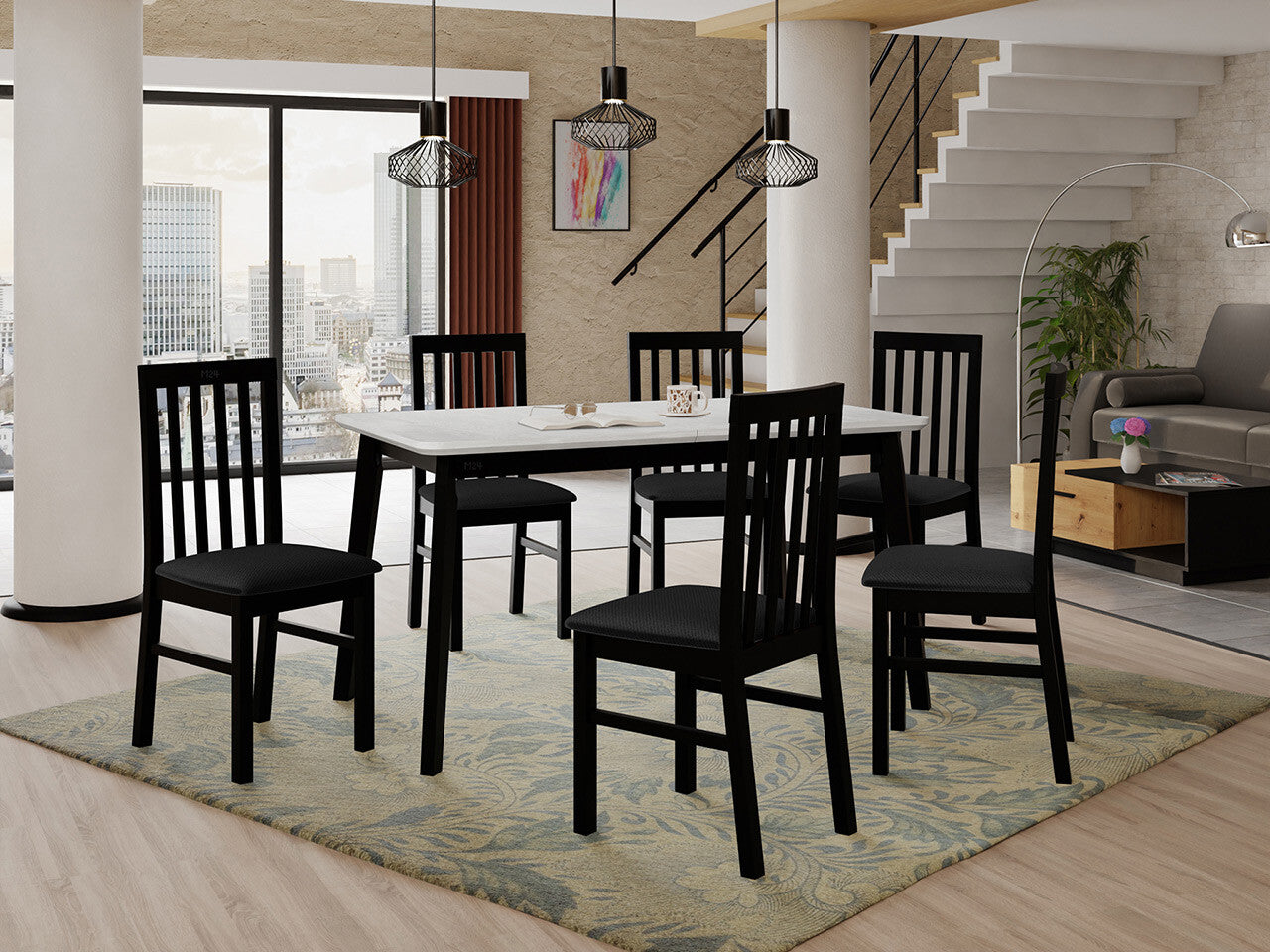 Étkezőgarnitúra 16 (OSLO 7 + MILANO 1), Fa színe: Fekete, Kárpit: Kronos 7