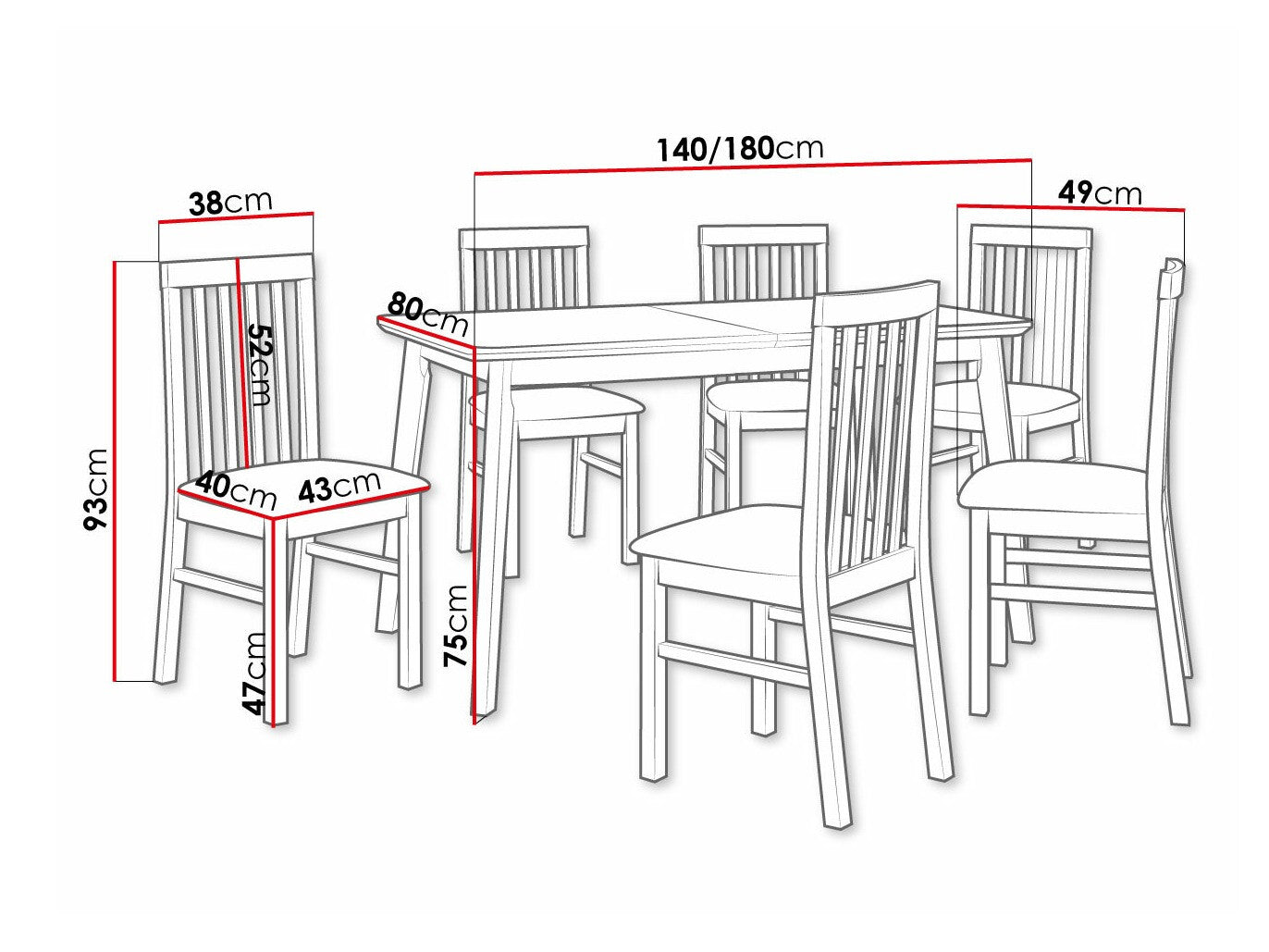 Szék méretek93 x 43 x 49 cm
