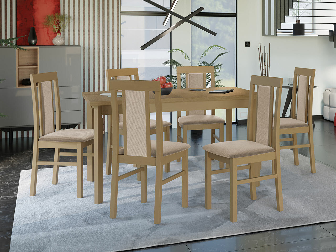Étkezőgarnitúra 20 (MODENA 1 P + NILO 2), Fa színe: Sonoma tölgy, Kárpit: Paros 2