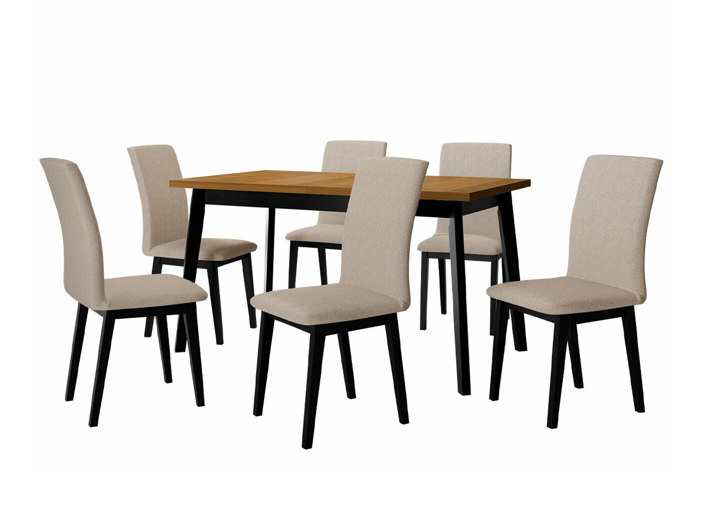 Étkezőgarnitúra 23 (OSLO 5 + LUNA 1) II, Asztal színe: Grandson tölgy + Fekete, Kárpit: Paros 2
